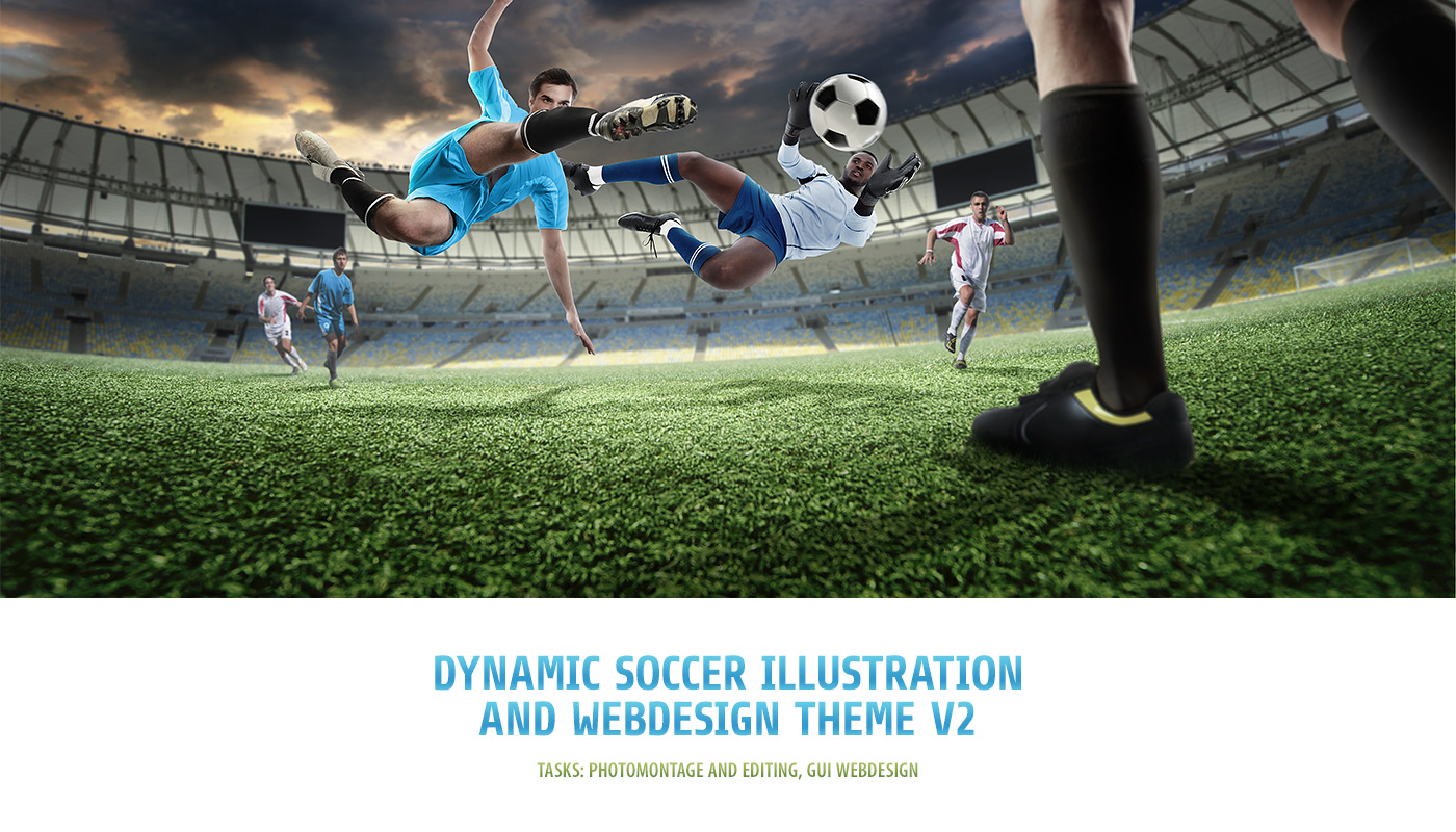 Photo-Illustration and GUI webdesign for soccer template theme.