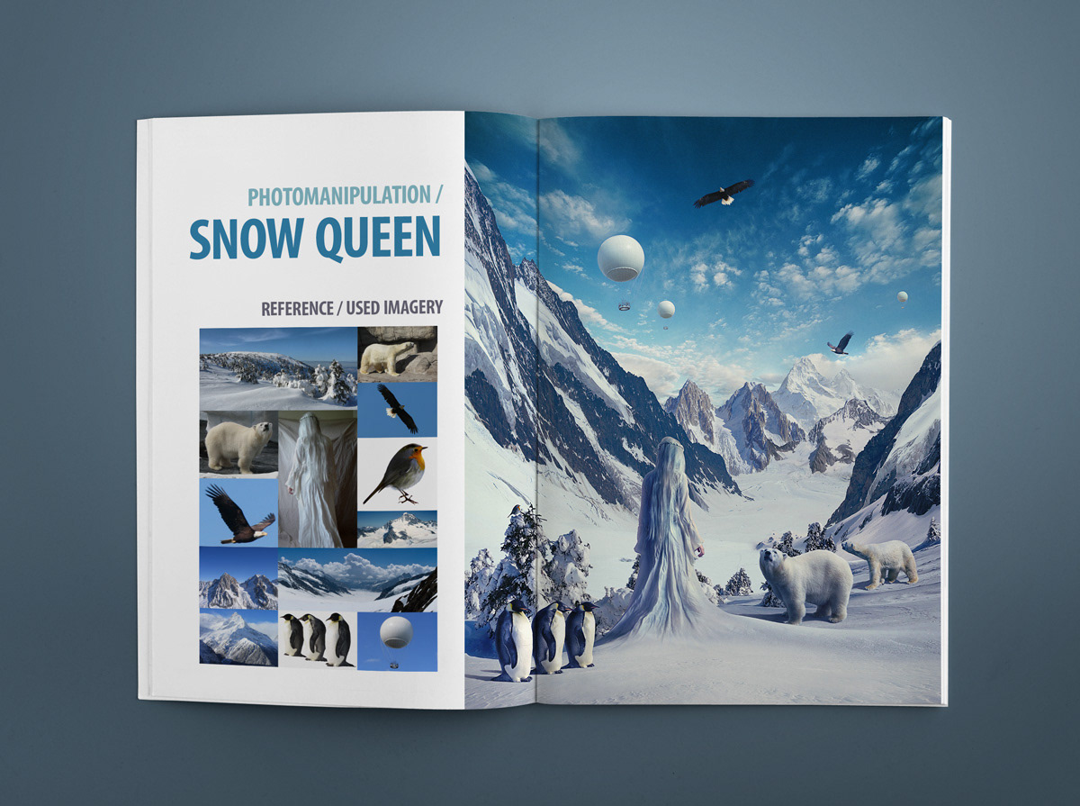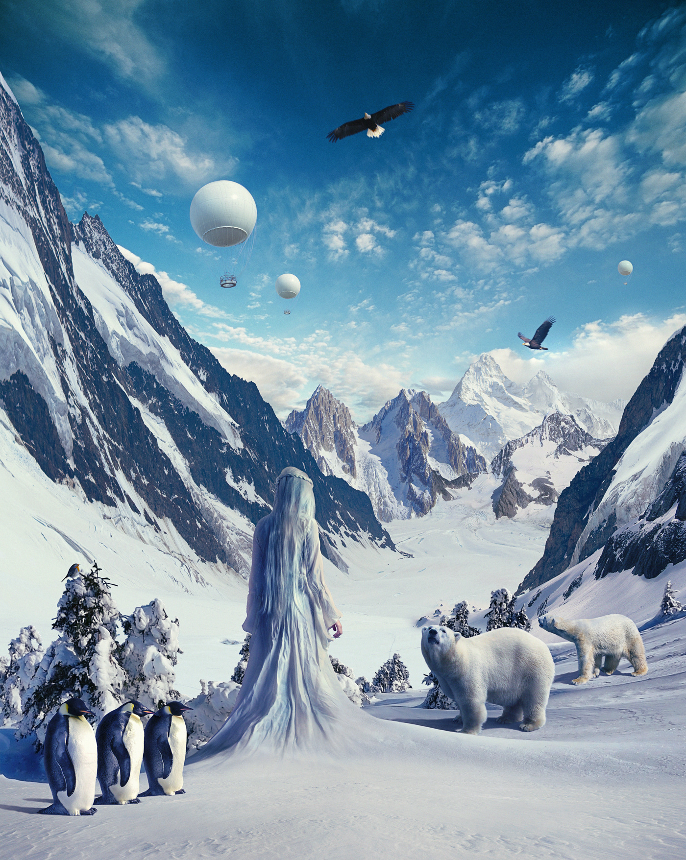Illustration and photo manipulation in photoshop by combining multiple photos, layers and retouching techniques.
